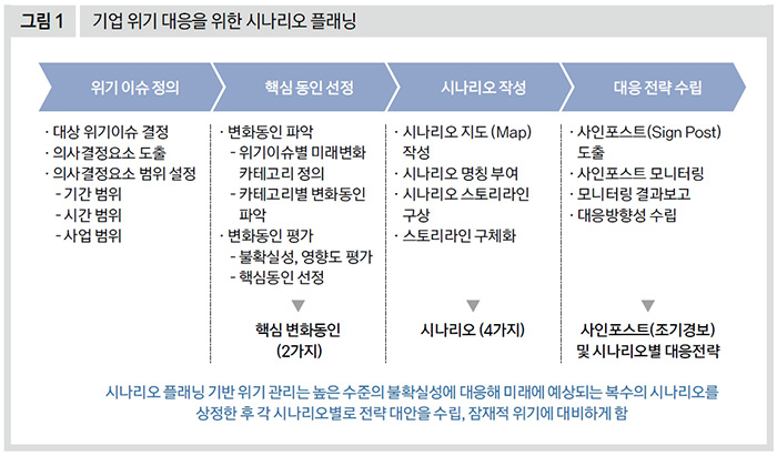 2026년 2월 28일 시작된 미국과 이스라엘의 이란 공습은 단순히 예측 가능한 위기를 넘어 과거의 통계나 확률 모델로는 가늠하기 어려운 ‘심층적 불확실성(Deep Uncertainty)’의 단계로 진입했다. 이제 지정학적 갈등은 지역적 분쟁을 넘어 에너지 시장의 붕괴, 물류 마비, 글로벌 공급망 교란을 통해 기업 경영의 근간을 흔드는 구조적 파국으로 확산되고 있다. 전쟁의 향방은 영향도와 불확실성이 가장 높은 두 가지 핵심 동인, 즉 전쟁의 범위(제한적 충돌 vs. 지역 전면전)와 미국의 전략목표(외교적 관리 vs. 체제 변화)에 의해 결정된다. 이 두 축의 조합에 따라 상황은 ▲외교적 긴장 완화 ▲관리된 충돌 ▲중동 지역 확전 ▲지상전 확대 및 체제 변화 등 네 가지 시나리오로 전개될 수 있다. 상황은 이미 중동 지역 확전(High Risk) 이상의 단계로 진입했다. 이제 기업은 막연한 낙관론을 버리고 전시 운영 체제에 준하는 대응 체계로 전환해야 한다. 공급망이 완전히 끊기고 현금흐름이 멈추는 최악의 상황까지도 상정하고 특정 지역에 쏠린 조달처의 즉각적인 우회, 비상시 유동성 선제 확보 및 통화별 자금 관리, 인적 자원 보호를 위한 철수 가이드라인 등 실제적인 생존 액션플랜을 가동해야 할 때다.