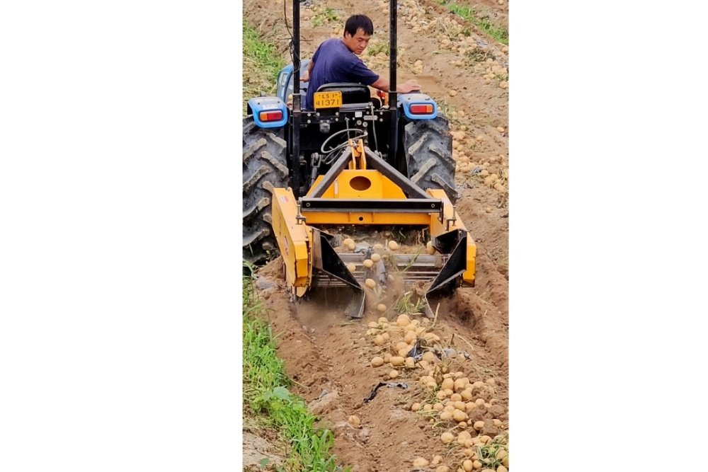감자 수확 현장에서 별도 멀칭필름 제거 작업 없이 트랙터로 원활히 수확하는 모습 / 출처=올바른사람들