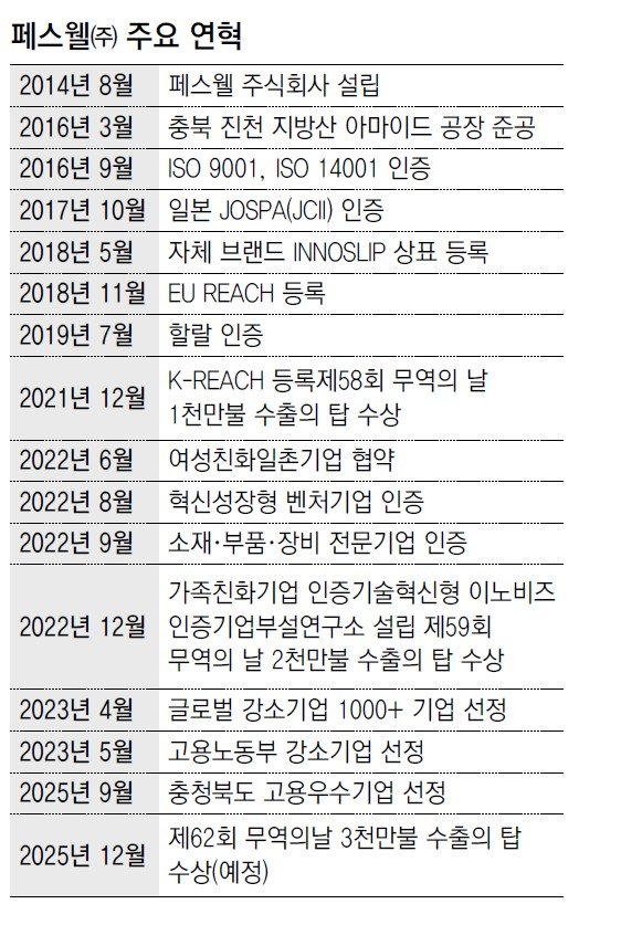 충북 진천에 본사를 둔 페스웰㈜은 설립 11년 만에 연 매출 약 600억 원 규모로 성장하며 대한민국 화학 첨가제 산업의 새로운 가능성을 입증하고 있다.