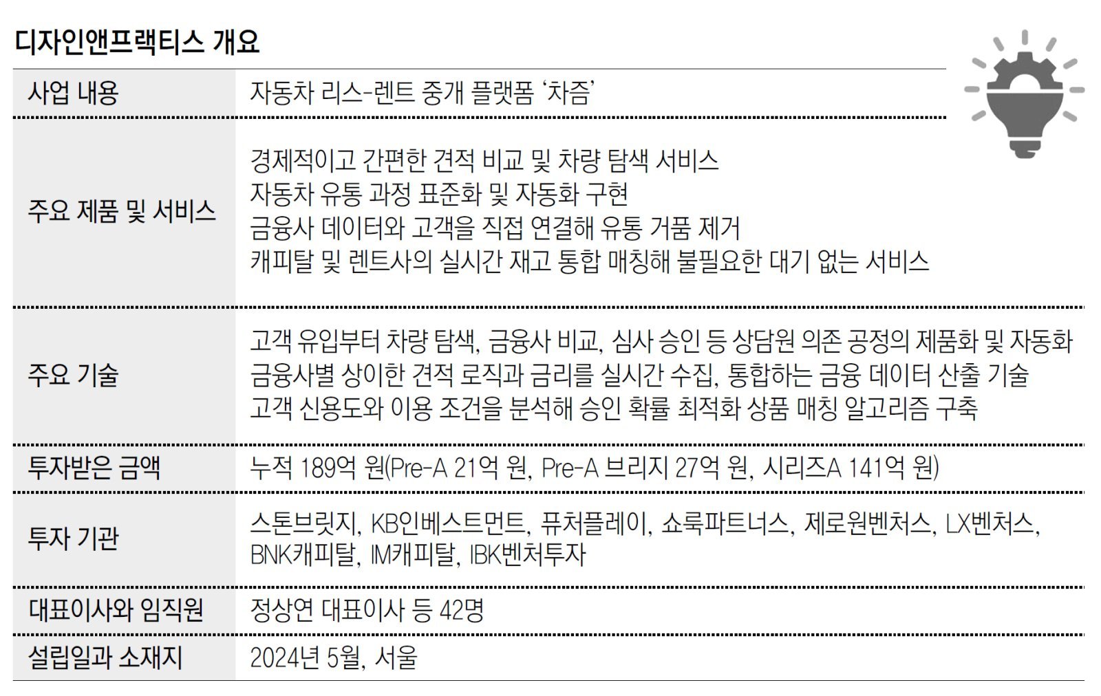 심사의 불투명성도 사용자를 당혹스럽게 한다. 주택담보대출도 모바일로 처리되는 시대인데, 자동차 리스나 렌트 심사는 여전히 금융사 사람의 심사에 의존하고 있다. 그러다 보니 심사역의 주관에 따라 결과가 달라질 수 있다. 어느 심사역을 만나느냐에 따라 승인이나 보증금이 필요한 조건부 승인, 혹은 불승인 결정이 나는 것이다. 정 대표는 고객의 이 같은 찜찜하고 불안한 마음을 없애 주면 시장이 더 커지겠다고 직감했다.
