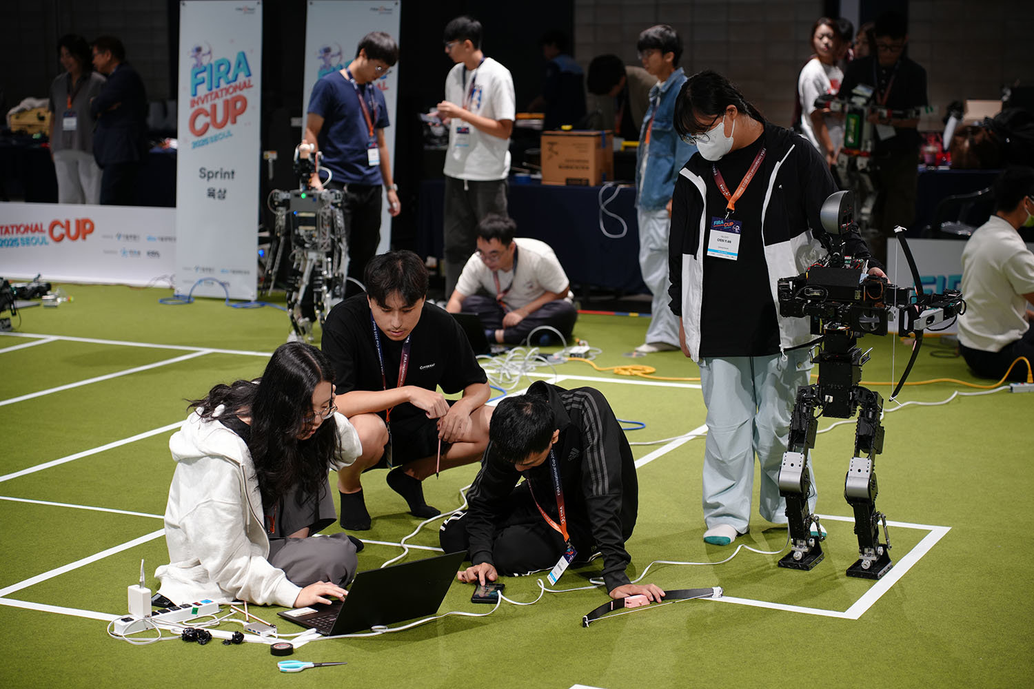 휴머노이드 로봇 스포츠 대회도 열린다. 국제로봇스포츠연맹(FIRA)과 협력해 개최되는 이 대회에는 총 22개 팀이 참가해 양궁, 단거리 달리기, 역도, 한국 전통 놀이인 비석치기 등 4개 종목에서 실력을 겨룬다. 각 종목은 로봇의 기술적 과제를 제시한다. 양궁은 정밀한 제어와 안정성, 단거리 달리기는 균형 감각과 속도, 역도는 구동력과 제어 능력이 필요하다. 이를 통해 참가팀들은 로봇의 종합적인 성능을 세계 무대에서 입증하게 된다.