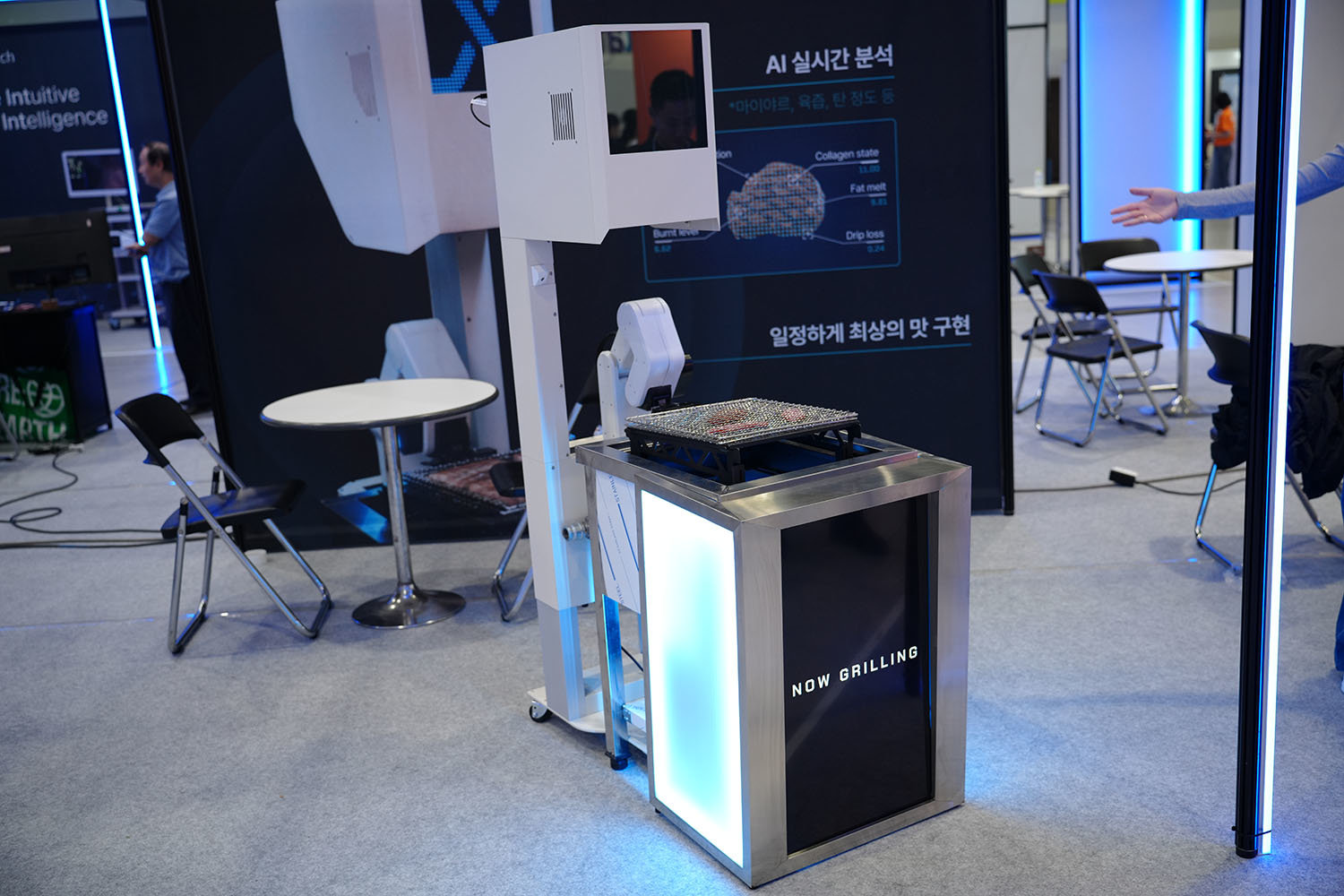 로봇이 고기를 이븐하게 구워준다 - 비욘드허니컴 ‘그릴 X(Grill X)’2025 서울AI로봇쇼에 참가한 비욘드허니컴(Beyond Honeycomb)은 인공지능 기반 그릴링 로봇 ‘그릴X(Grill X)’를 공개했다. 그릴X는 인간의 주관적인 감각과 경험에 의존하던 그릴(구이) 요리를 혁신하는 장비다. 이소정 비욘드허니컴 매니저는 “그릴 X는 전문 셰프들의 조리 데이터 50만 건을 학습한 인공지능 모델이 탑재되어, 고기의 상태를 실시간으로 감지하고 최적의 굽기를 자동으로 수행합니다”라고 말했다.