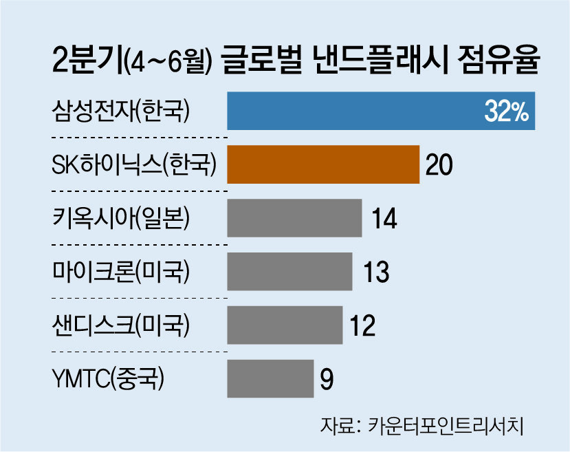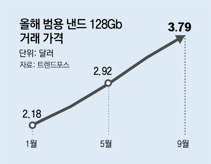 하지만 빅테크들의 AI 경쟁이 치열해지며 낸드에서도 고부가 제품 수요가 늘고 있다. 업계 관계자는 “AI 서버에서 대용량 데이터를 효율적으로 관리하는 역량이 갈수록 중요해지며 낸드 업그레이드의 필요성이 커지고 있다”고 전했다. 삼성전자가 2분기(4∼6월)에 낸드 재고 탓에 ‘어닝 쇼크’를 기록한 반면, 3분기(7∼9월) 기대 이상의 실적을 발표한 배경에도 낸드 판매 이익이 늘어난 영향이 있었다는 분석이 나온다.