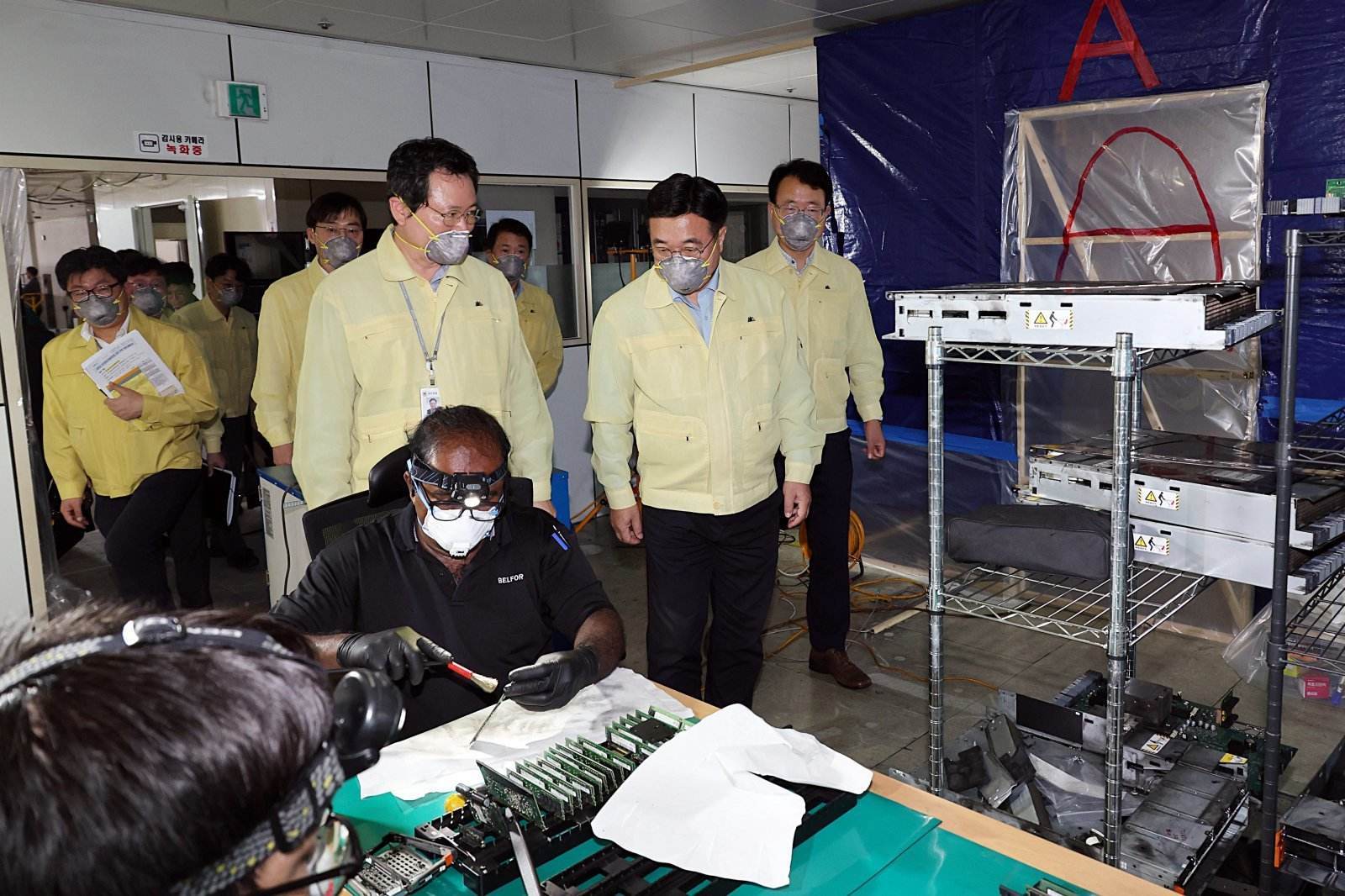 Minister of the Interior and Safety Yoon Ho-jung inspecting the restoration site of the administrative information system suspended due to a fire at the National Information Resources Service headquarters in Yuseong-gu, Daejeon / Source: Ministry of the Interior and Safety