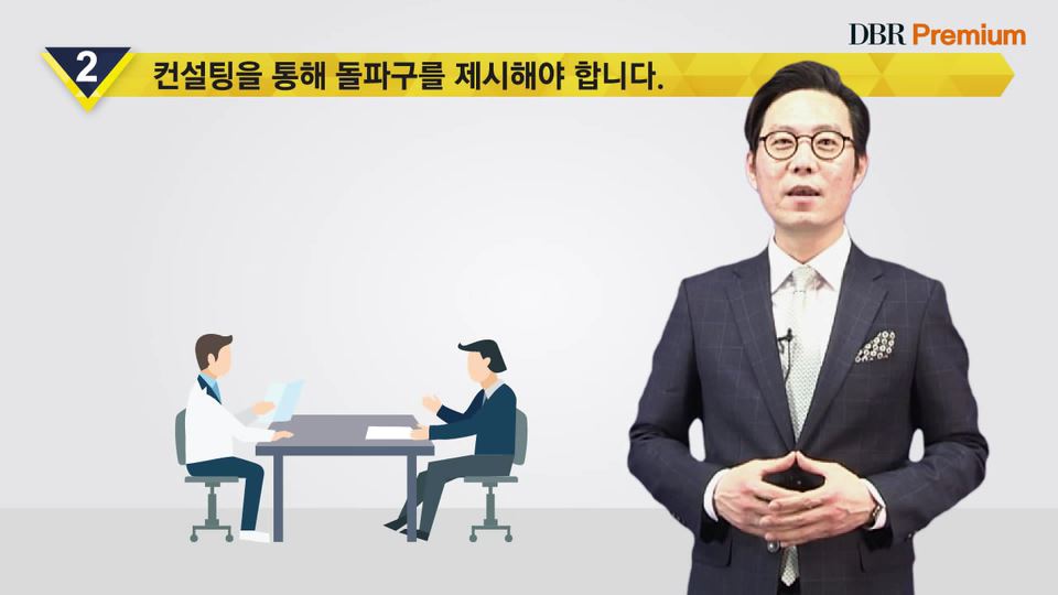 첫째, 교육을 통해 고객의 수준을 높여야 합니다. 둘째, 컨설팅을 통해 돌파구를 제시해야 합니다..