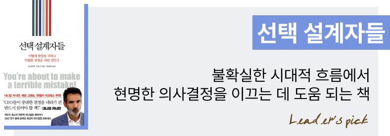 오늘 소개하는 책을 통해 혼돈의 시대에서 탁월한 의사결정으로 빛나는 리더가 되기 위한 팁을 얻기를 바랍니다.