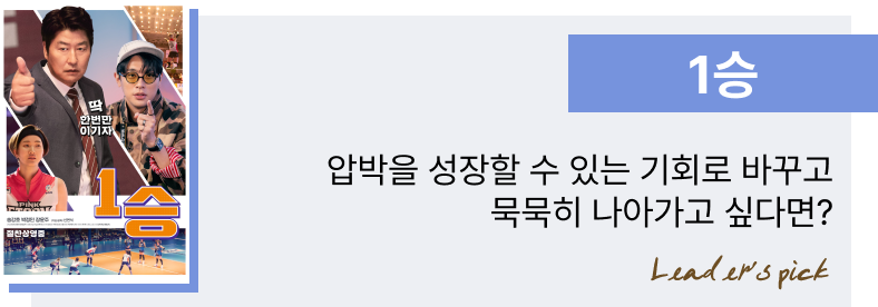 최근에 소개했던 팀장의 음악에 이어 '팀장의 영화'도 공유합니다. 2024년 12월에 개봉한 영화 '1승'입니다. 유머와 감동을 느낄 수 있고 리더십 측면에서도 유의미한 질문을 건네는 영화입니다. 전체적인 내용보다는 인생과 리더십의 관점에서 의미 있게 본 점들을 위주로 소개합니다.